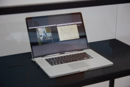 The found images are presented side by side on a laptop inside a vitrine showing pairs of drawers as Ingo Müller and Gerd Schneider left them after the relocation.