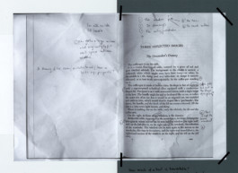 The text is two pages long and forms a near scientific and highly detailed description of a room in which various objects exist. In particular the reflection of a window in a mirror over a fireplace and its double and triple reflections in another mirror on a wardrobe found on the opposite side of the room are given significant attention.